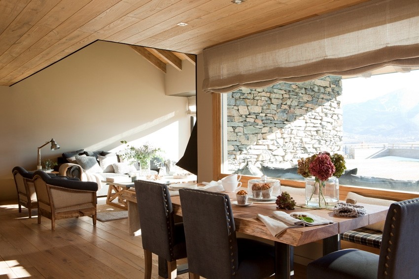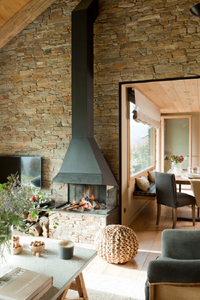 Una familia amante del Pirineo catalán deseaba sentir el aire puro cada mañana sin necesidad de abrir las ventanas. Para crear ese ambiente, seleccionamos elementos decorativos en los colores de la montaña: marrón que evocaba la madera, gris como la piedra y negro como el hierro. En las piezas principales de decoración utilizamos tonos grises: el sofá, la chimenea, los sillones y las sillas del salón y la cocina. En la zona de noche optamos por el marrón, ya que aporta calidez y paz al espacio. ¡Os invitamos a recorrer el Pirineo de la decoración a través de las fotografías!