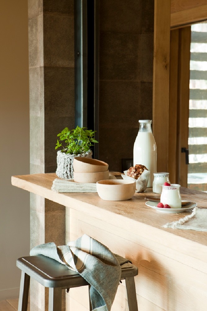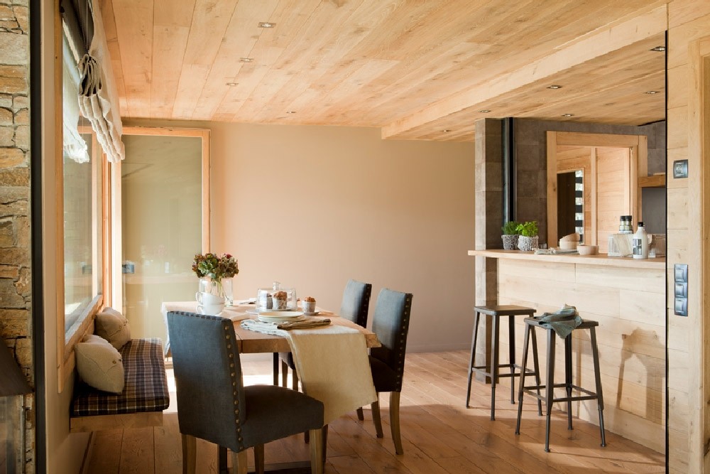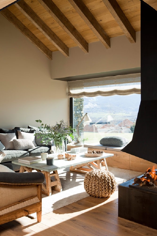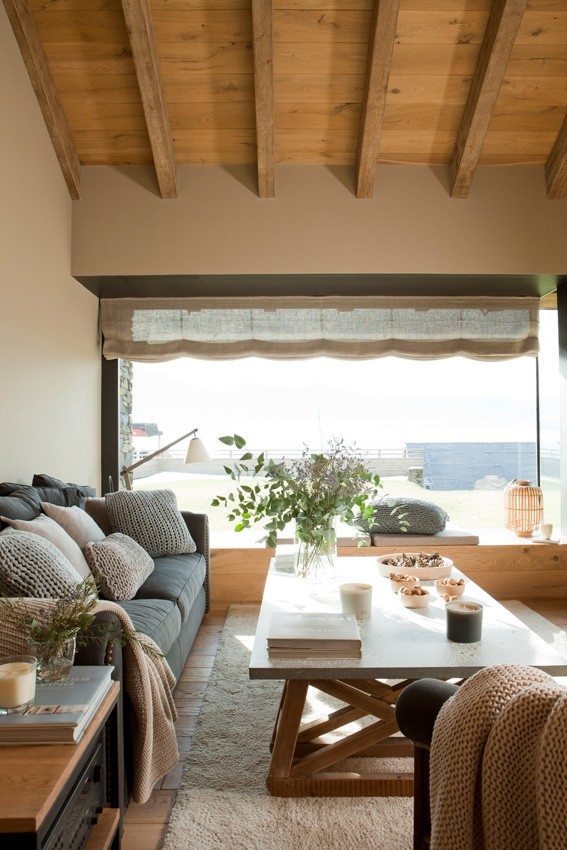 “Al colocar un banco de madera en el salón no solo ganamos espacio de almacenamiento y un asiento, sino también un mirador perfecto junto a un gran ventanal.”