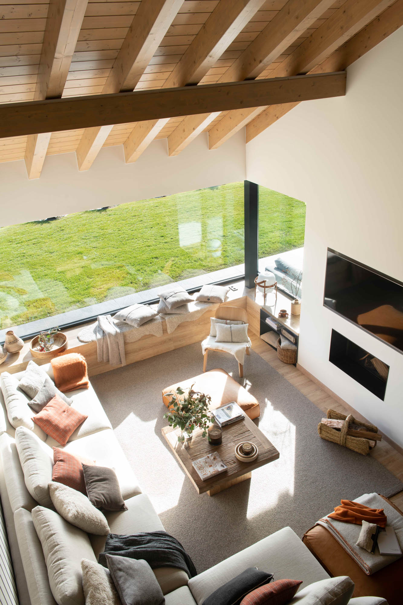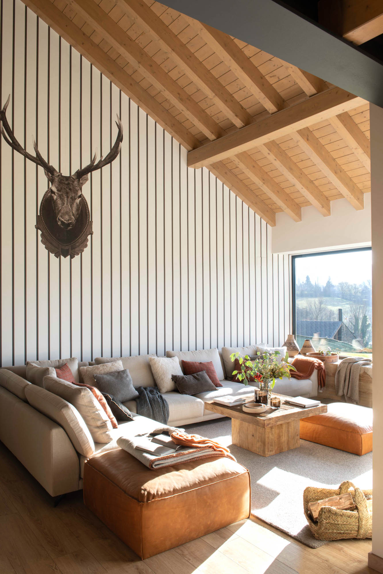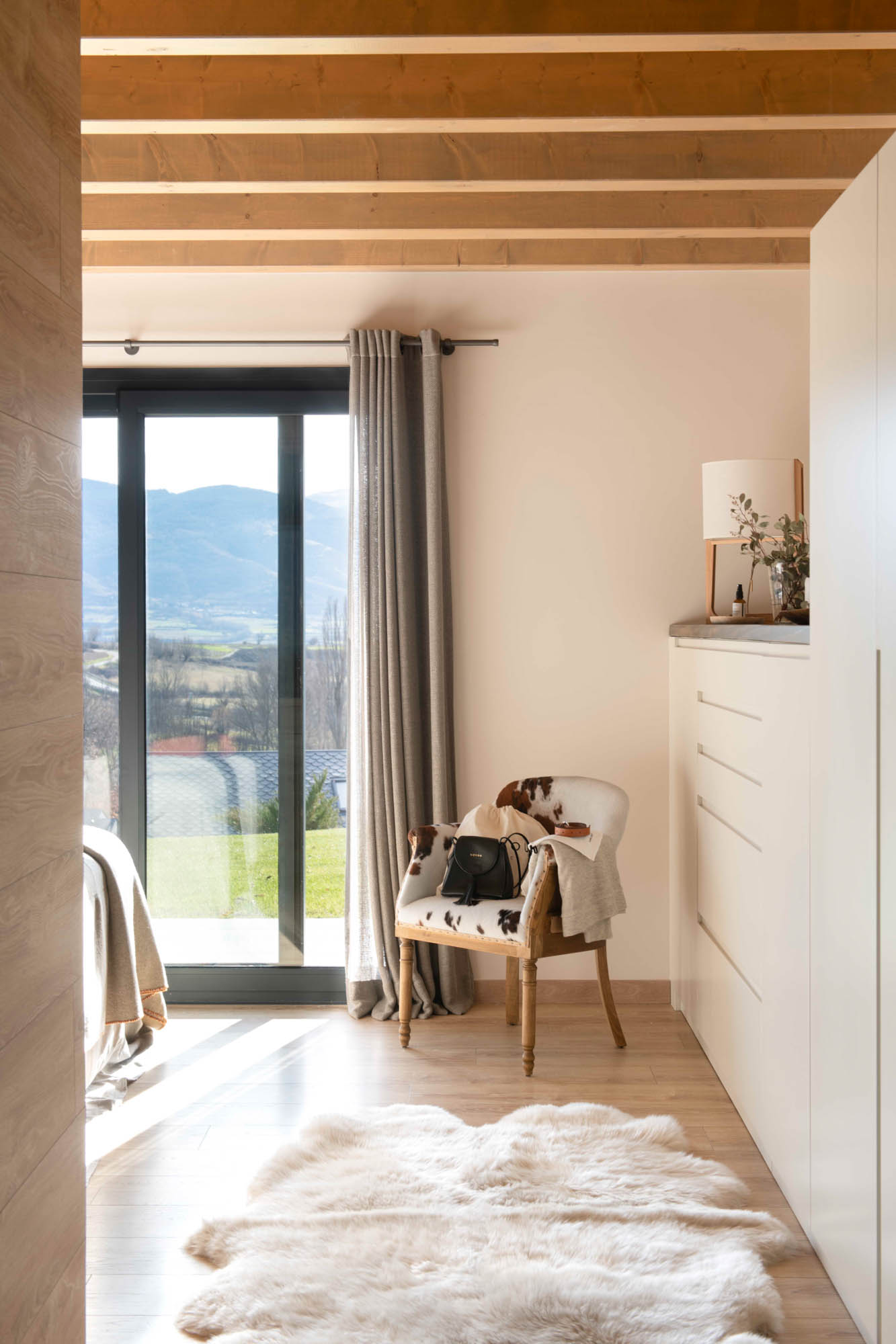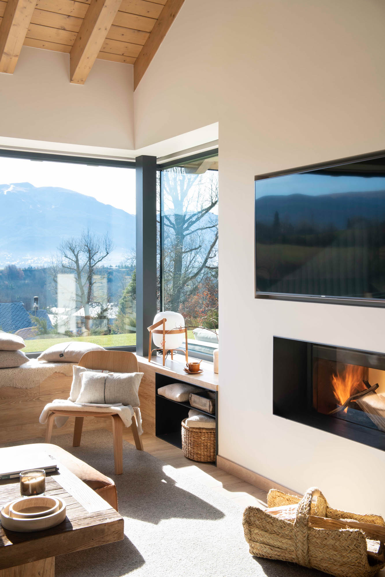 Pensada para disfrutar en familia todo el año, la casa sorprende con una cocina abierta en tonos antracita, integrada al salón con chimenea de doble cara y grandes ventanales que conectan con el paisaje. Los toques industriales, como el hierro o las lámparas negras, contrastan con la calidez de los textiles naturales. En la suite principal, la luz natural entra a través de una ventana interior, creando un baño íntimo con sensación de estar en plena naturaleza. Un hogar funcional, envolvente y personal, hecho para quedarse.