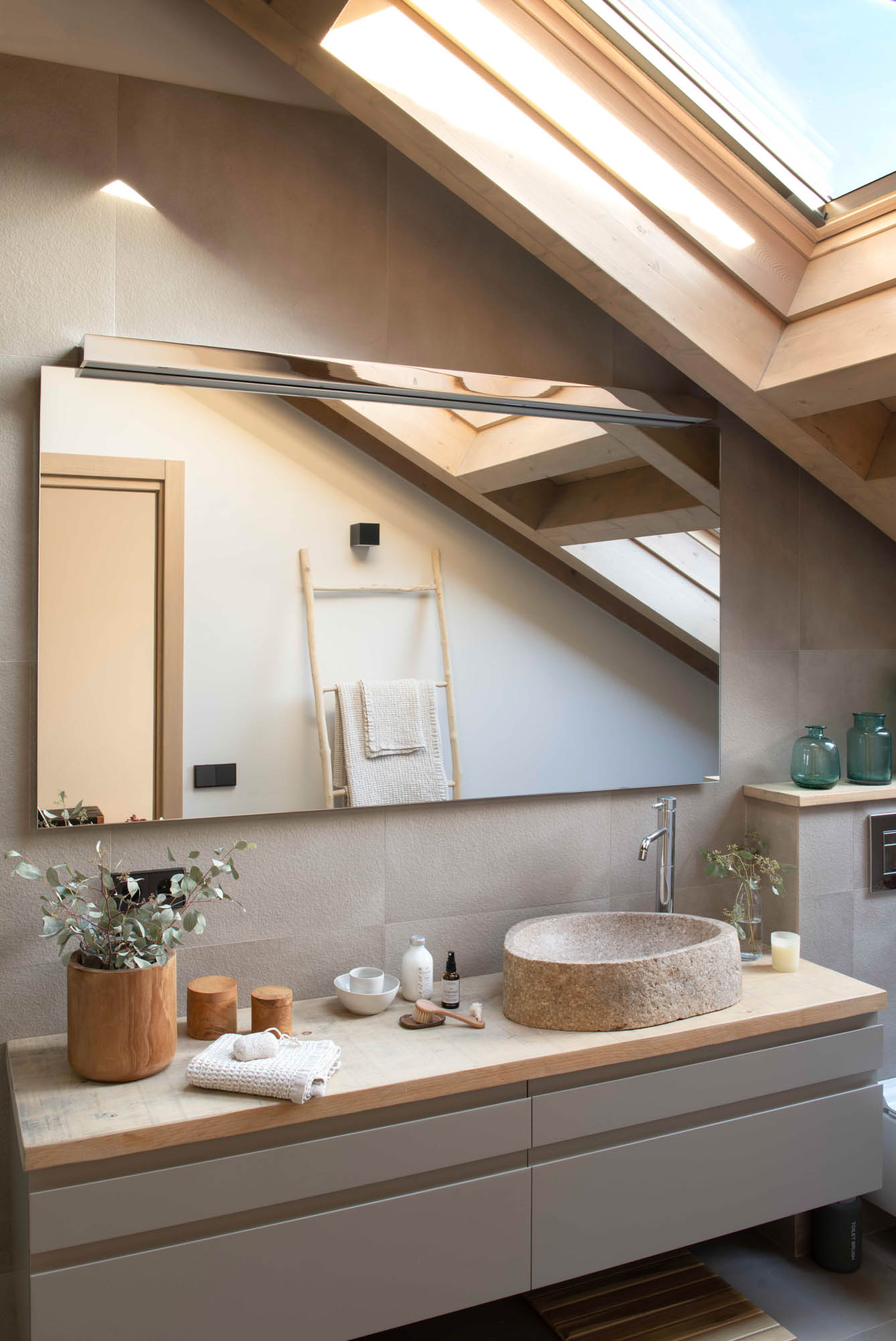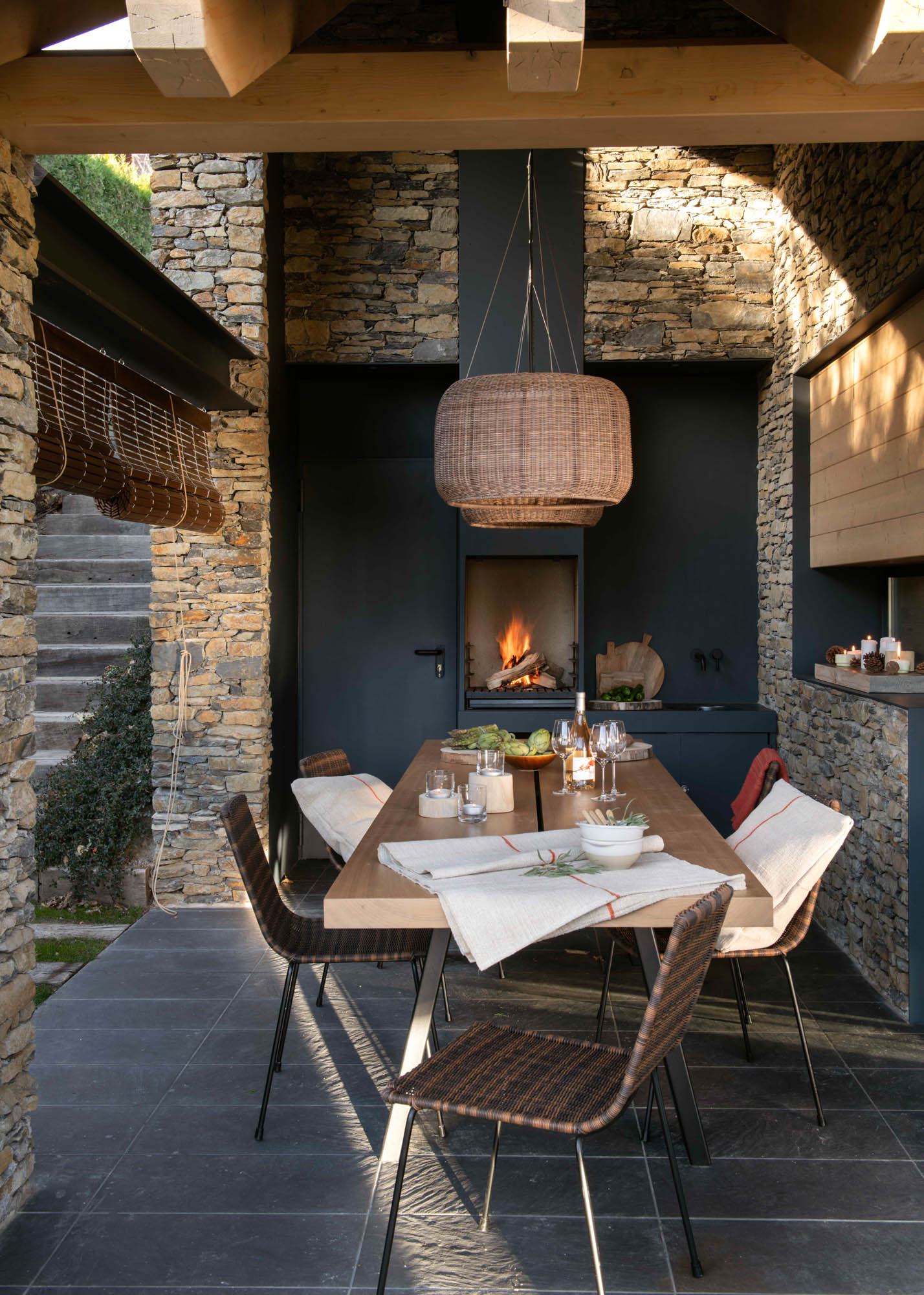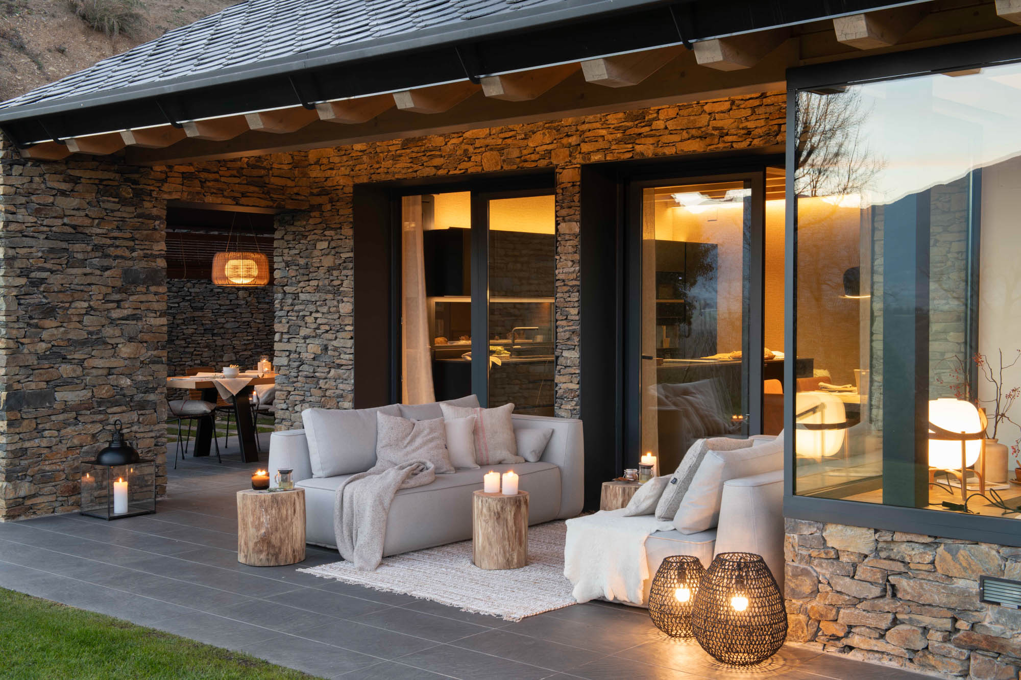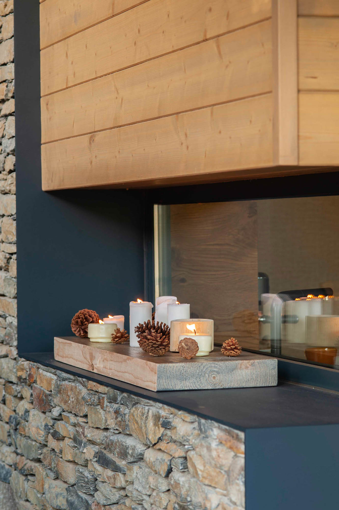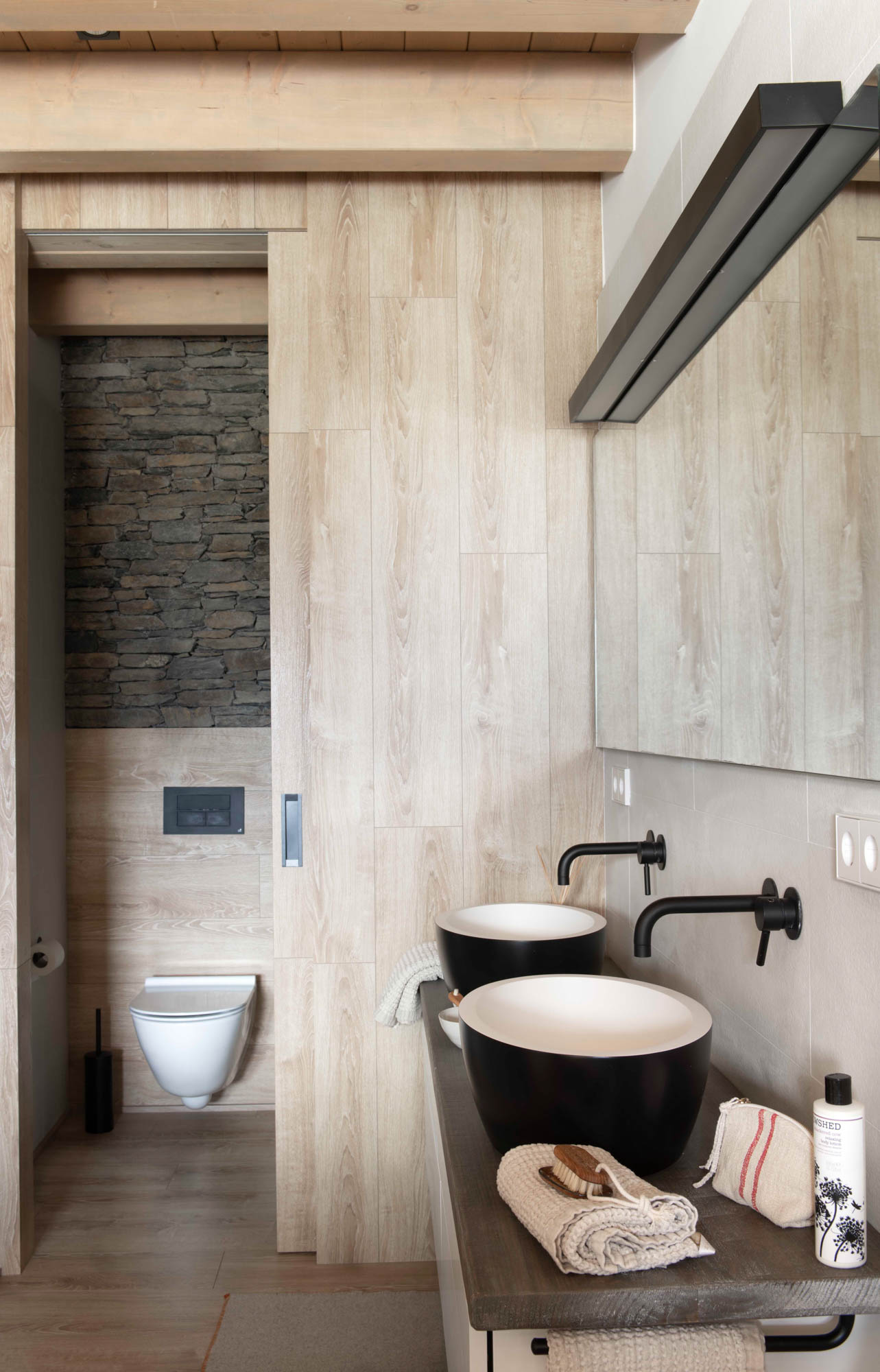 Pensada para disfrutar en familia todo el año, la casa sorprende con una cocina abierta en tonos antracita, integrada al salón con chimenea de doble cara y grandes ventanales que conectan con el paisaje. Los toques industriales, como el hierro o las lámparas negras, contrastan con la calidez de los textiles naturales. En la suite principal, la luz natural entra a través de una ventana interior, creando un baño íntimo con sensación de estar en plena naturaleza. Un hogar funcional, envolvente y personal, hecho para quedarse.
