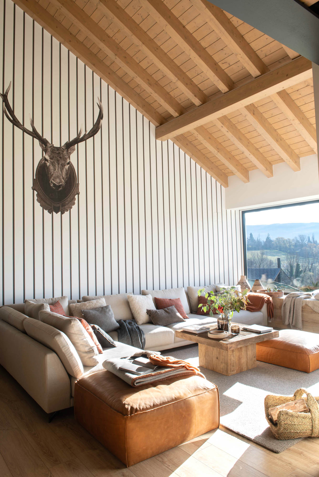 Los propietarios se enamoraron de las vistas a los Pirineos y decidieron construir allí la casa de montaña con la que siempre habían soñado. Pero el resultado, de la mano de Marina&Co, va mucho más allá del concepto clásico: una vivienda de obra nueva, amplia y cálida, con una estética muy cuidada que combina piedra, madera, cuero y papel pintado a medida, en un equilibrio perfecto entre rusticidad y modernidad.
